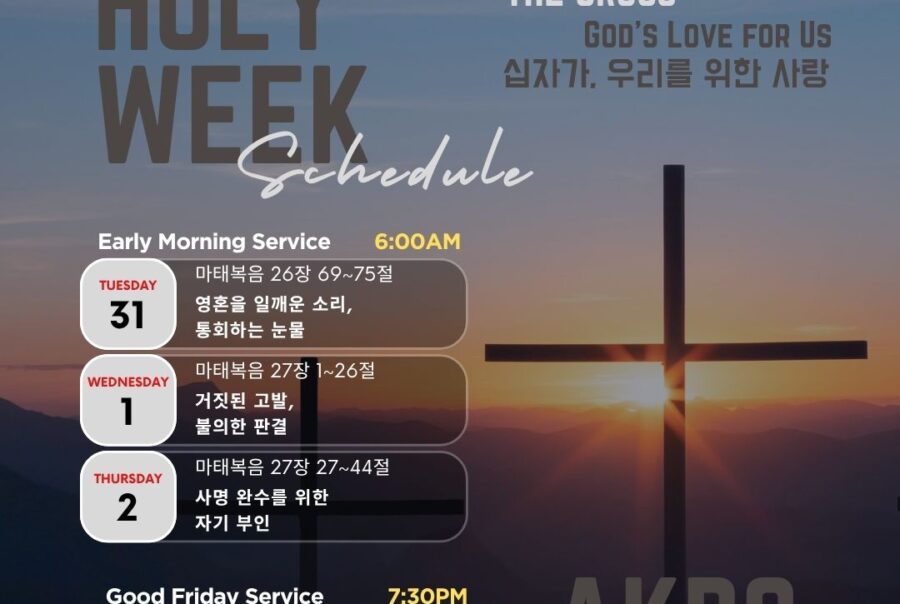 교회 이벤트 / 화,수,목 6AM, 금 7:30PM