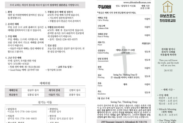 날마다 하나님 말씀 앞에 내 생각을 내려놓고, 주님이 원하시는 교회, 사랑으로 하나님의 뜻을 이루는 공동체가 되어, 우리 함께 제자의 길을 걸어가기를 소망합니다.
