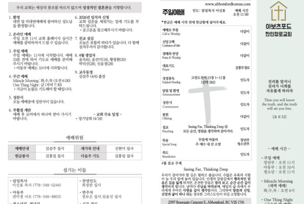 하나님 말씀대로 살기 위해서 내가 붙들고 있는 생각과 기준을 내려놓는 것, 그것이 바로 믿음의 길입니다. 우리가 함께 지켜가야 하는 것은 어떤 교단의 이름이나 형식이 아니라 하나님의 말씀입니다. 그리고 그 말씀 앞에서 먼저 변화되어야 하는 사람은 다른 누군가가 아니라 “나” 자신입니다.
