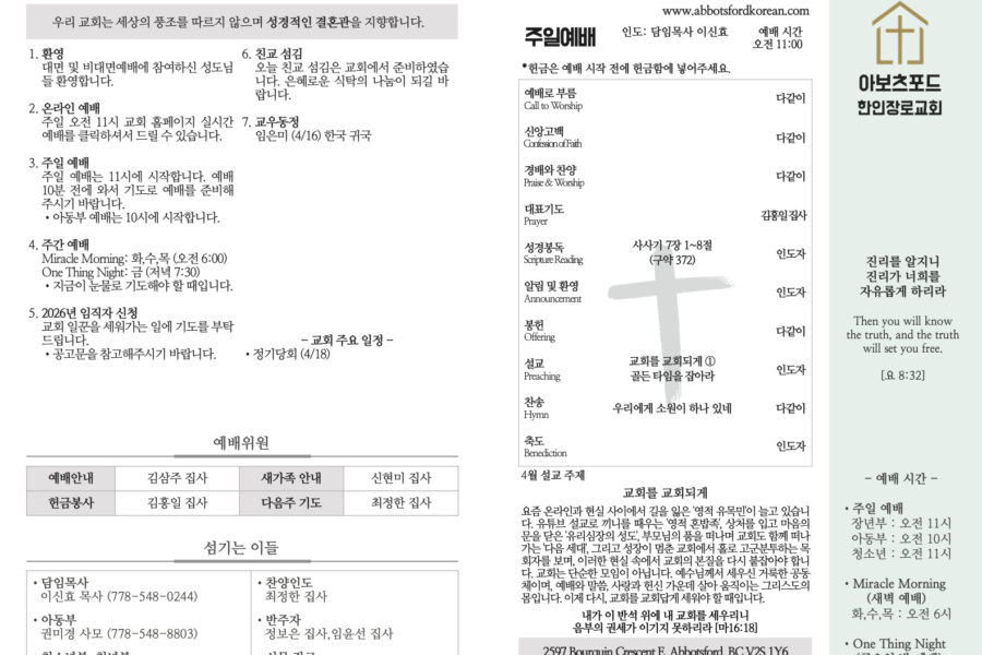 Minister letterNews 빈 무덤을 증언하라 작년 부활절에도 우리 청소년부 학생들이 정성껏 부활절 계란을 만들어 나누어 드렸습니다. 그때 한 성도님께서 저에게…shinhyo leeApril 5, 2026